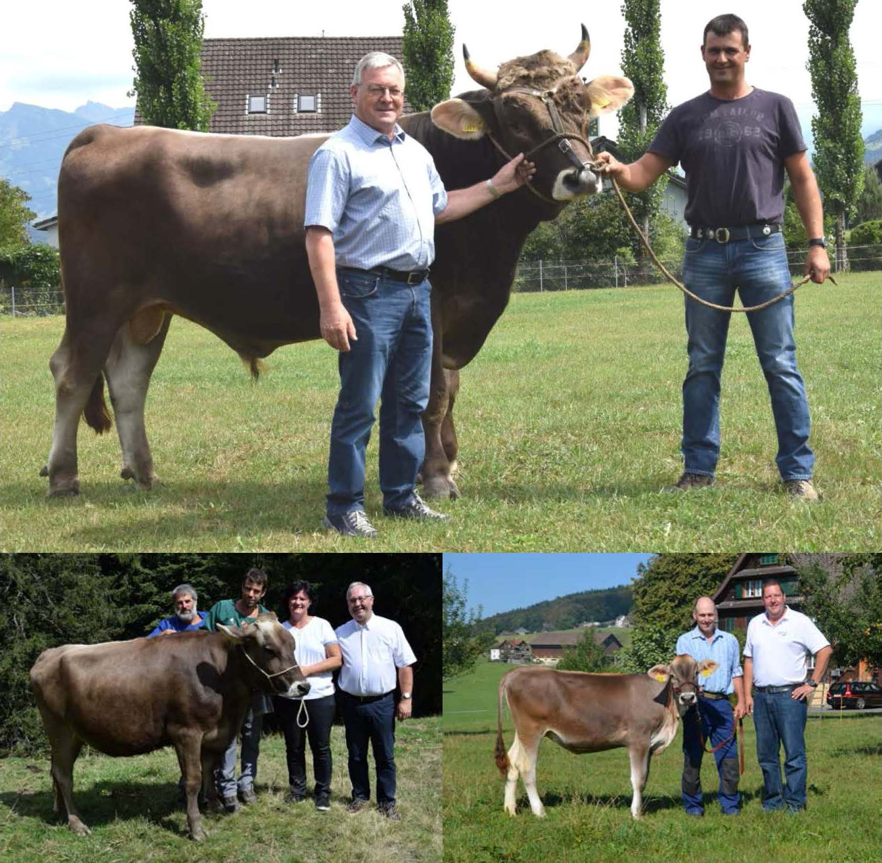 Rind «Cleopatra» mit den Besitzern Robert und Ueli Schirmer sowie den Spendern Barbara Krieg und Guido Vogt.