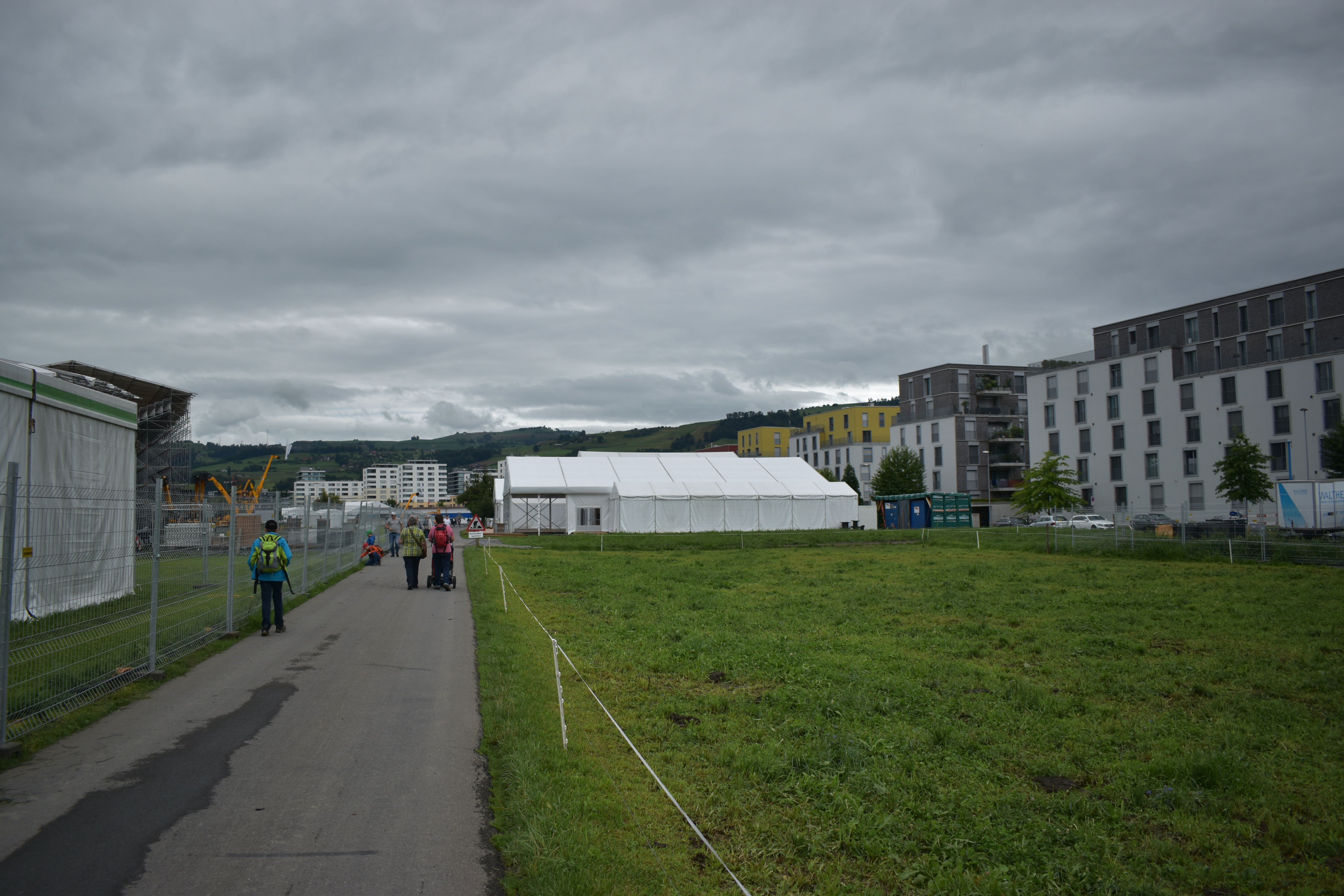 Die Zug Arena grenzt ziemlich nahe an eine Wohnsiedlung. Wie man sich aber vor Ort selber überzeugen konnte, sollte dies keine Probleme verursachen. Das Gelände ist entsprechend gekennzeichnet und abgegrenzt, und wie man weiss, verhalten sich die Schwingerfreunde anständig.