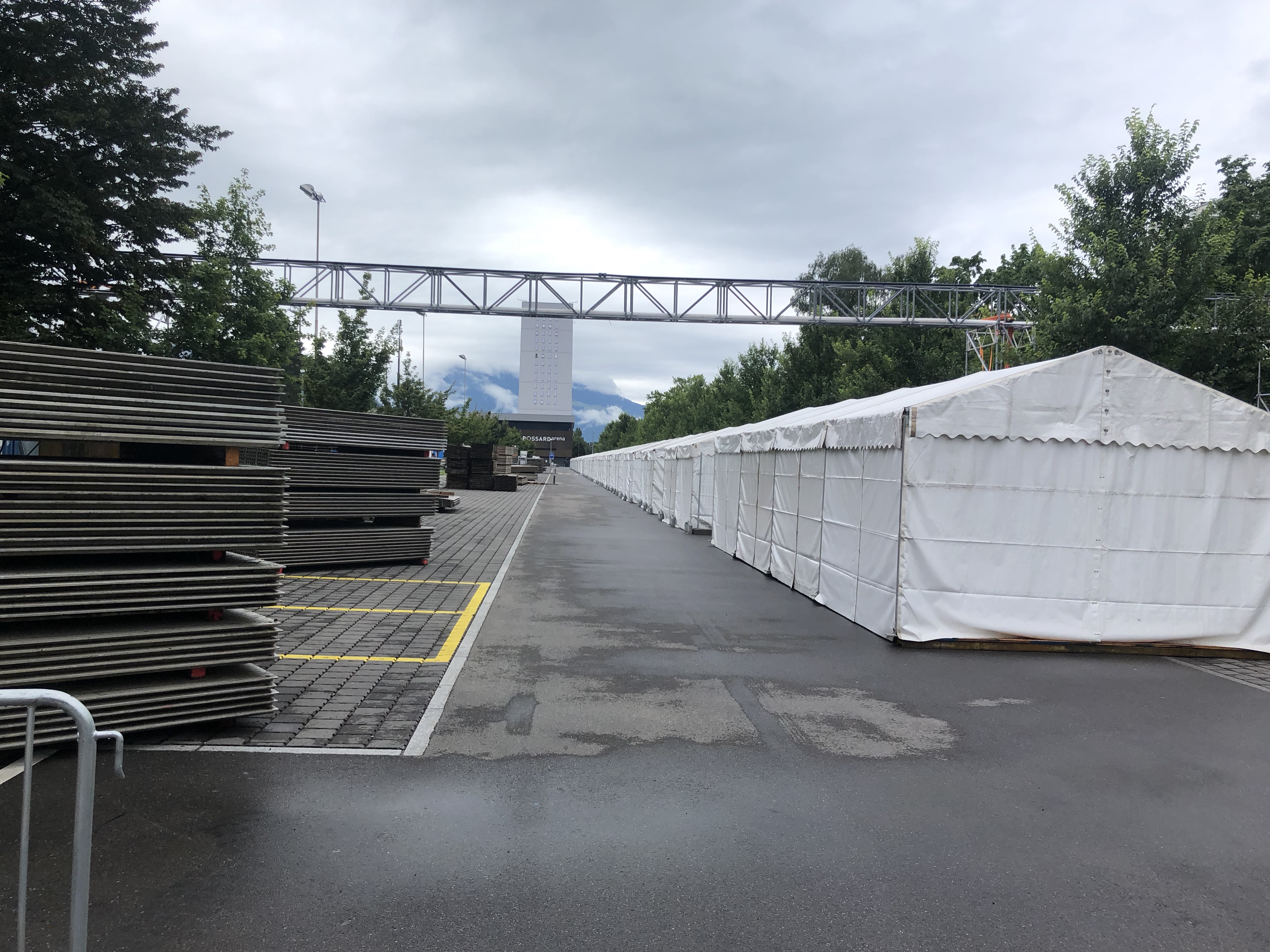 Nach der Schwingerallee folgt der Zugang zum Herzstück des Festgeländes: Eine äusserst beeindruckende Perspektive! Die Zug Arena bietet 56’500 Personen Platz, in welcher hoffentlich ein Feuerwerk an spektakulärem Schwingsport gezündet wird.