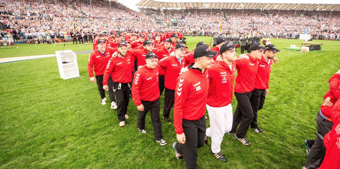 Die Innerschweizer Schwinger, voll motiviert und vereint beim Einzug am ESAF 2019 in Zug