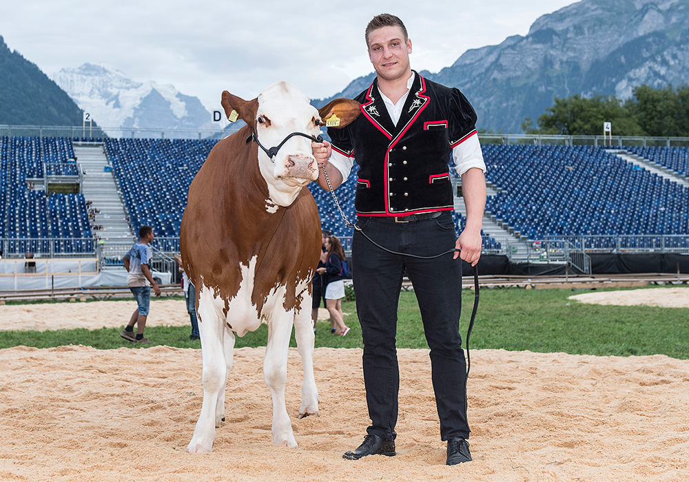 Curdin Orlik (mit Lebendpreis nach Unspunnen-Schwinget), einer der bisher gemeldeten Spitzenschwinger, gab Auskunft