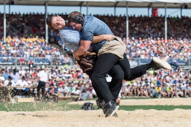 Ralf: Wenn einer einen Schwung gut beherrscht, zeigt er ihn den anderen. Seit diesem Jahr besitzt unser Klub eine Kamera, welche uns beim Training filmt. So können wir uns überprüfen und hinterher besprechen, was gut ist oder was es zu verbessern gibt. Es gilt auch, die Schwünge, welche man schon hunderte Male gemacht hat, weiterhin zu üben. Damit diese bei einem Schwingfest ohne Probleme abrufbar sind. Für einen neuen Schwung braucht es etwa zwei bis drei Jahre, bis man ihn richtig beherrscht. Ich bin froh, wenn ich drei oder vier Schwünge gut beherrsche und diese auch bei Wettkämpfen anzuwenden weiss.